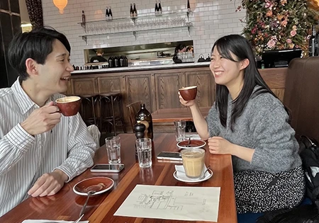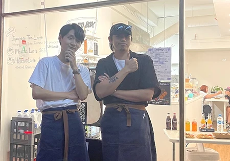 友人を通じて、ご飯を食べていた時。そのあと友達になり、勤めている会社のイベントスタッフとしても働いてもらっています。チケットのスキャナーなど、普通のイベントスタッフの仕事だけでなく、バリスタ職もお願いできてラッキー!