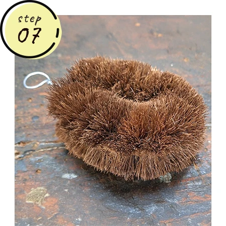 針金に挟んでねじっていくと、いよいよタワシらしく!