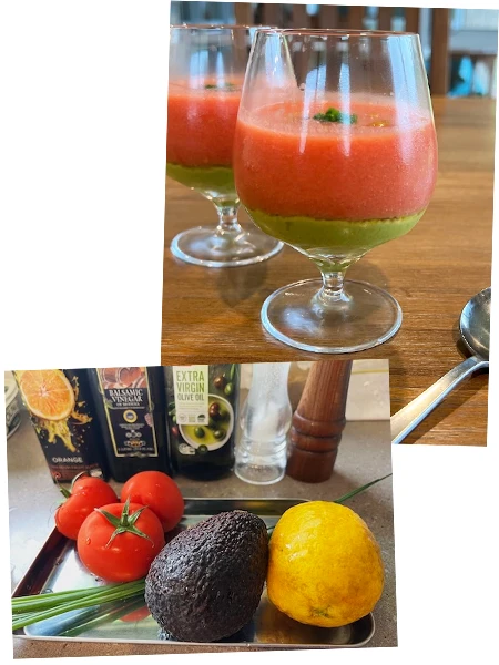 今回、作ってくれたのは、「トマトとアボカドの冷製スープ」。